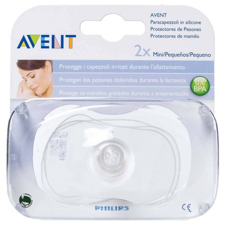 Avent Protector de Pezón Mini 2 U es un protector de pezones f abricados con silicona ultrafina (sin olor ni sabor), ayudan a prolongar la lactancia .