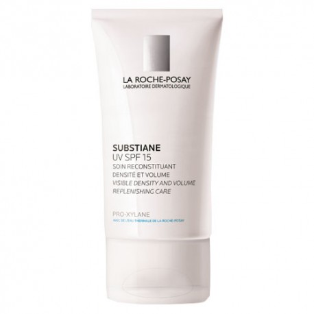 La Roche Posay Substiane UV de es un tratamiento para el cuidado fundamental reconstituyente antiedad que acaba con la flacidez de la piel. Además combate la pérdida de la sustancia cutánea y la sequedad. Su fórmula innovadora para pieles maduras asocia linactyl y pro xylane. Aporta luminosidad y confort a la piel, que consigue que se rellene y el relieve se alise. Además, gracias a su protección de los rayos Uva el envejecimiento se ralentiza. Sin parabenes.